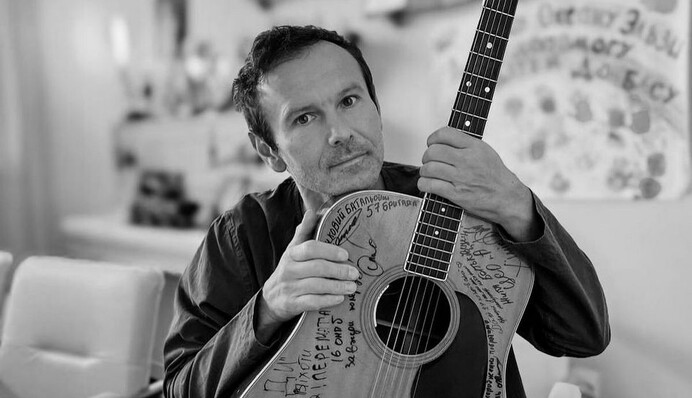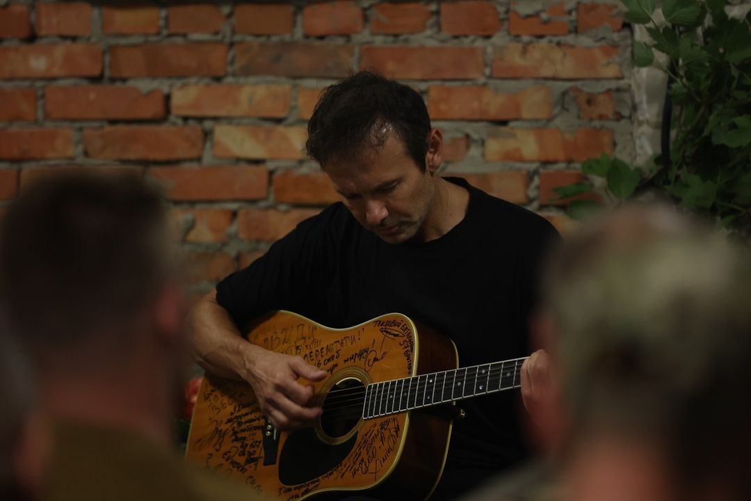 Святослав Вакарчук, лидер группы "Океан Ельзи", которая в этом году отмечает 30-летие, показал уникальную акустическую гитару. Она сопровождает музыканта во всех его поездках на фронт.