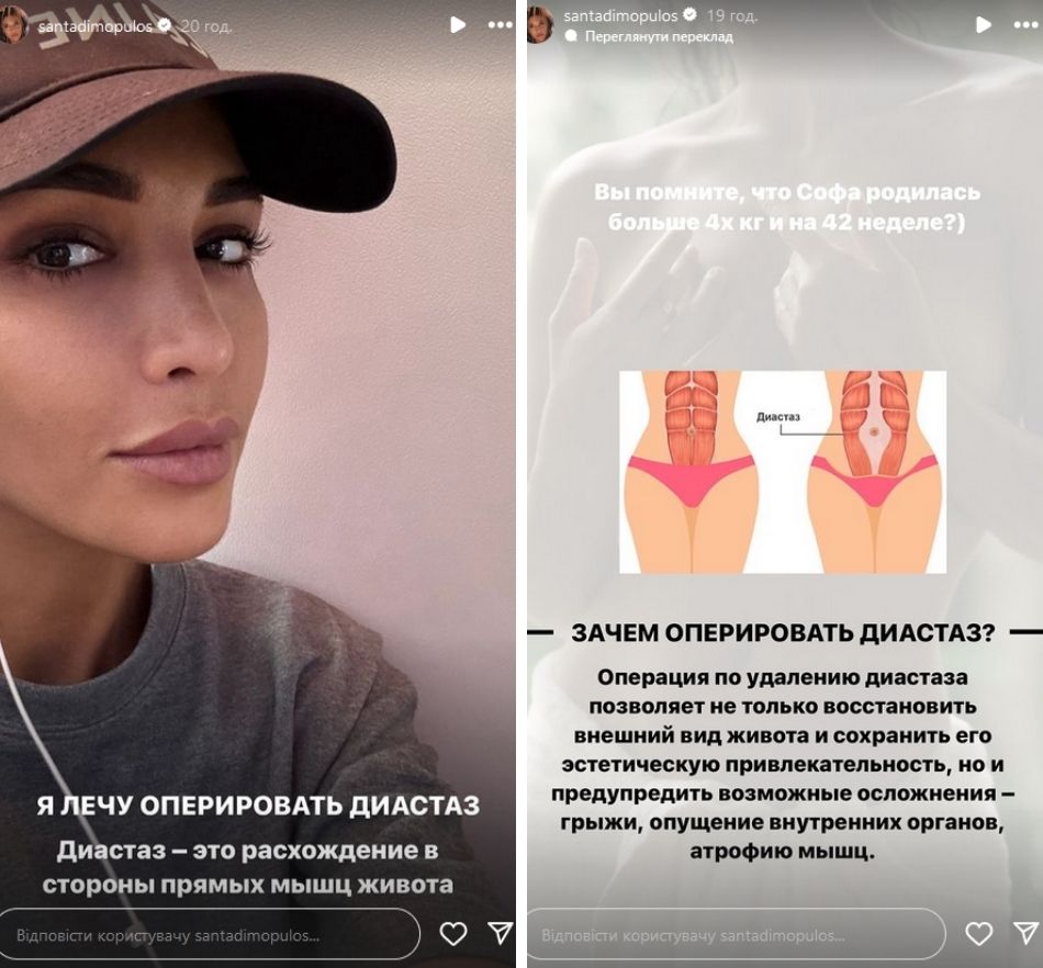 Санта Димпулос, которая во время полномасштабной войны живет в Европе и дружит с россиянкой, прилетела в ОАЭ, чтобы сделать операцию. Бывшая украинская певица и чемпионка мира по бодибилдингу решила хирургическим путем восстановить фигуру после родов.
