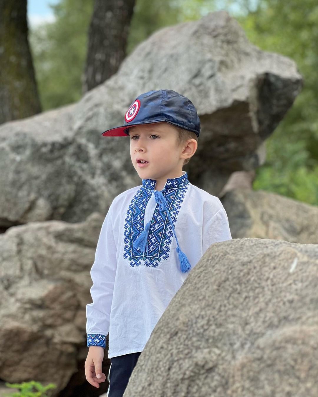 На снимках Денисенко, Андрей Фединчик и их 6-летний сын Андрей одеты в нарядные вышиванки. Наталка выбрала белую рубашку с минималистичной серой вышивкой. Фединчик надел контрастную черную вышиванку с вышитыми узорами белого цвета. Сына пара нарядила белую рубашку с синей вышивкой.