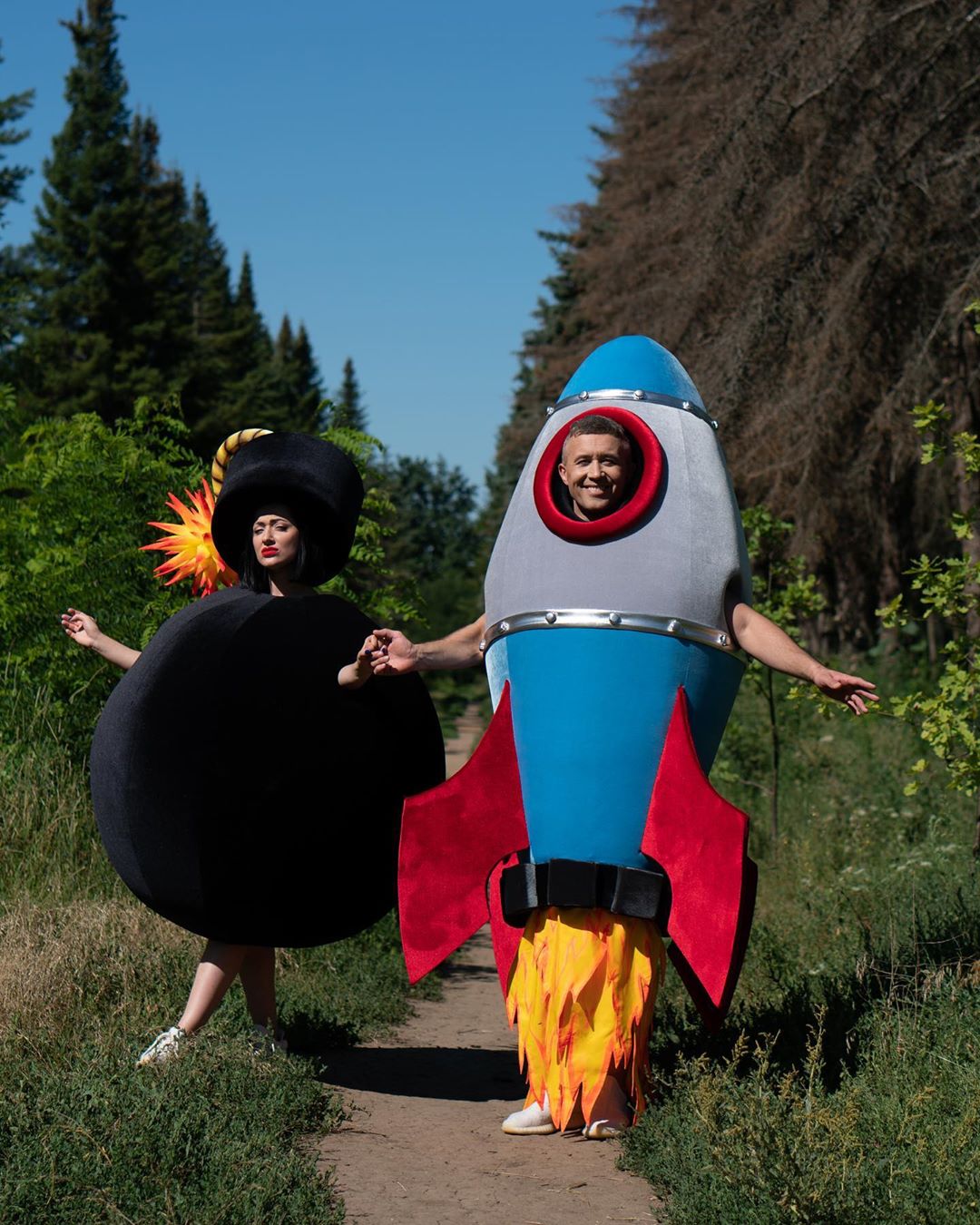 Роль "ракеты" в клипе досталась самому Бабкину, а "бомбу" сыграла супруга музыканта Снежана. Чтобы перевоплотиться в своих героев пара примерила забавные костюмы, которые были сшиты на заказ. Передвигаться в них было очень сложно и жарко, но эффект стоил того - клип получился очень ярким и летним.