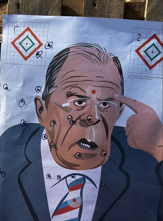Судя по опубликованному фото, для этого используют мишень с изображением министра иностранных дел РФ Сергея Лаврова.