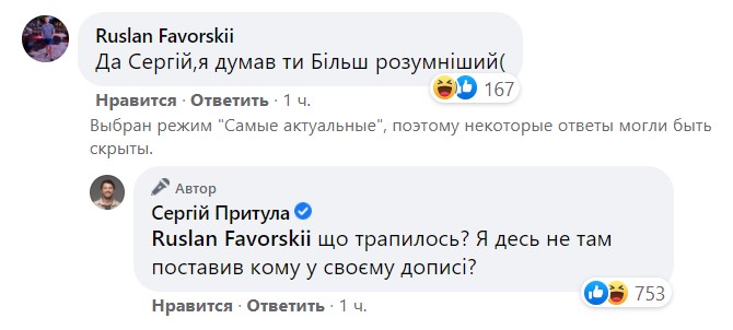 Под постом Притулы собрались десятки мнений, в том числе и в поддержку ведущего и вакцинации в целом. Сам же Притула ответил на некоторые комментарии антивакцинаторов шутками и дискутировать всерьез не стал.