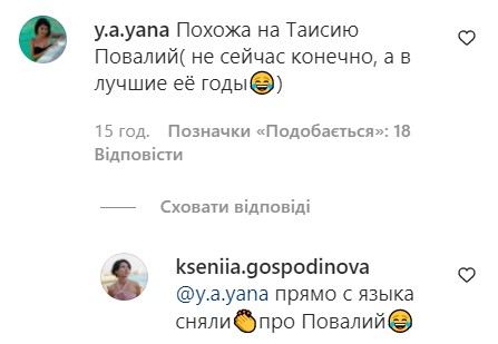 Однако фанаты обратили свое внимание не только на соблазнительный образ певицы. Они продолжают бурно обсуждать новый имидж звезды. "На Повалий похожа", "Похожа на Таисию Повалий (не сейчас конечно, а в лучшие ее годы)", "Я подумала, откуда в моей ленте Таисия Повалий?! На этом фото очень на нее похожи", - высказались по этому поводу подписчики.