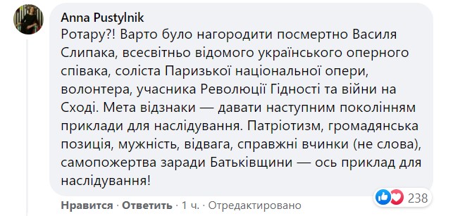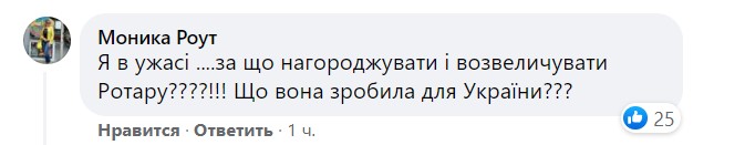 "Я в ужасе. За что награждать и возвеличивать Ротару? Что она сделала для Украины?" - возмутились в комментариях. "Ротару вчера пела русским на новой волне, а сегодня награду получает от президента Украины. Нет у человека ничего святого... стыдно и за нее, и за президента..." - добавили под постом Офиса президента.