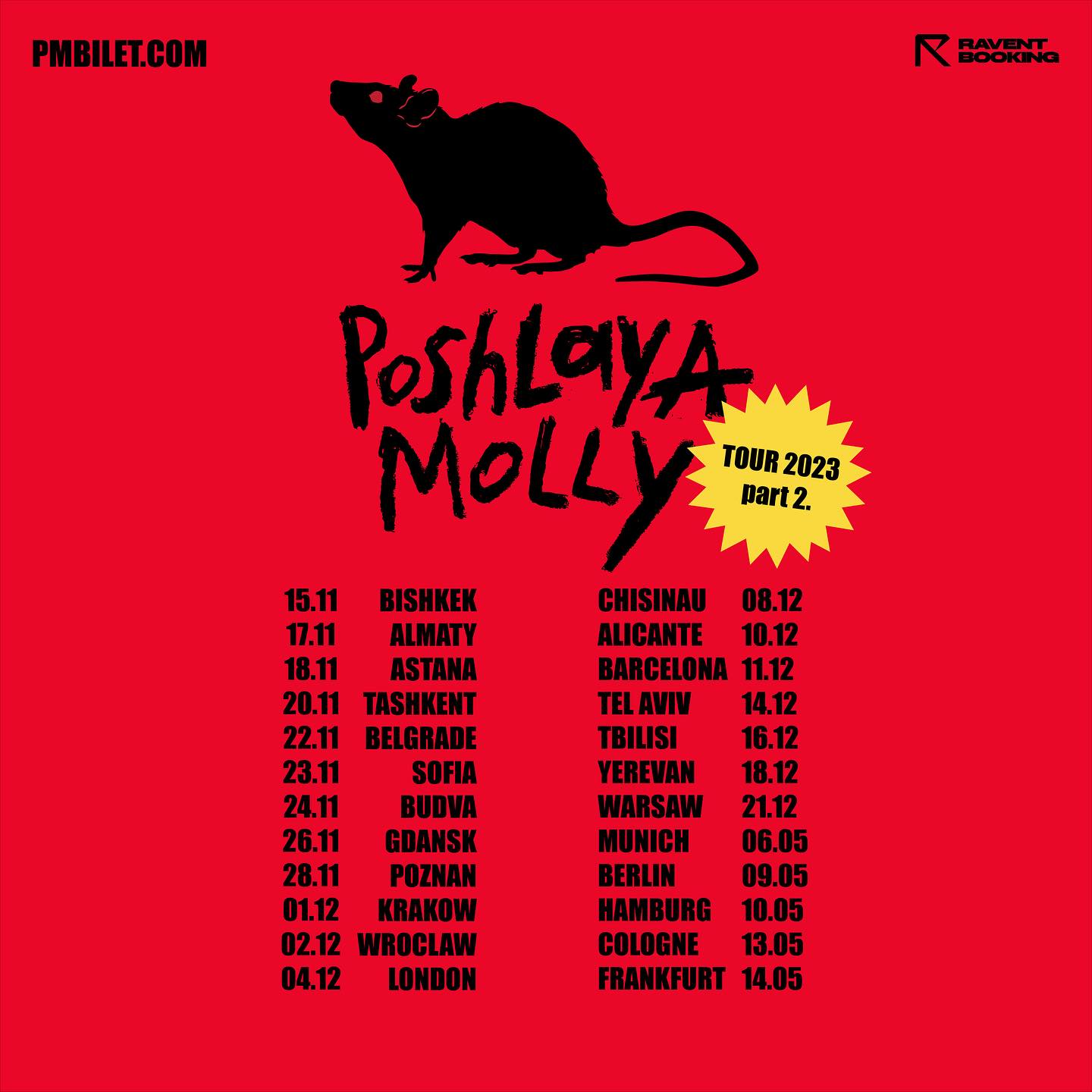 Группа "Пошлая Молли" планирует концерты в Европе, и во многих городах Польши в том числе. Выступления запланированы в ноябре и декабре этого года.