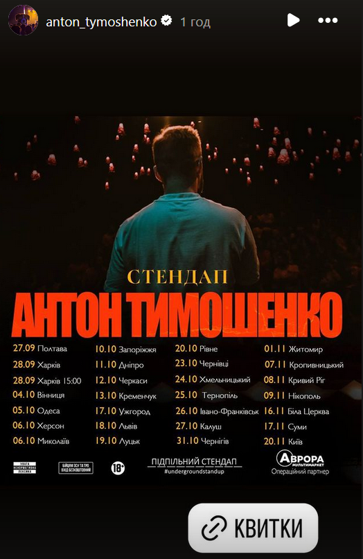 Также стендап-артист опубликовал афишу с расписанием своих следующих концертов в рамках его всеукраинского тура. И пообещал скоро анонсировать дополнительные стендап-шоу в Киеве и Львове.