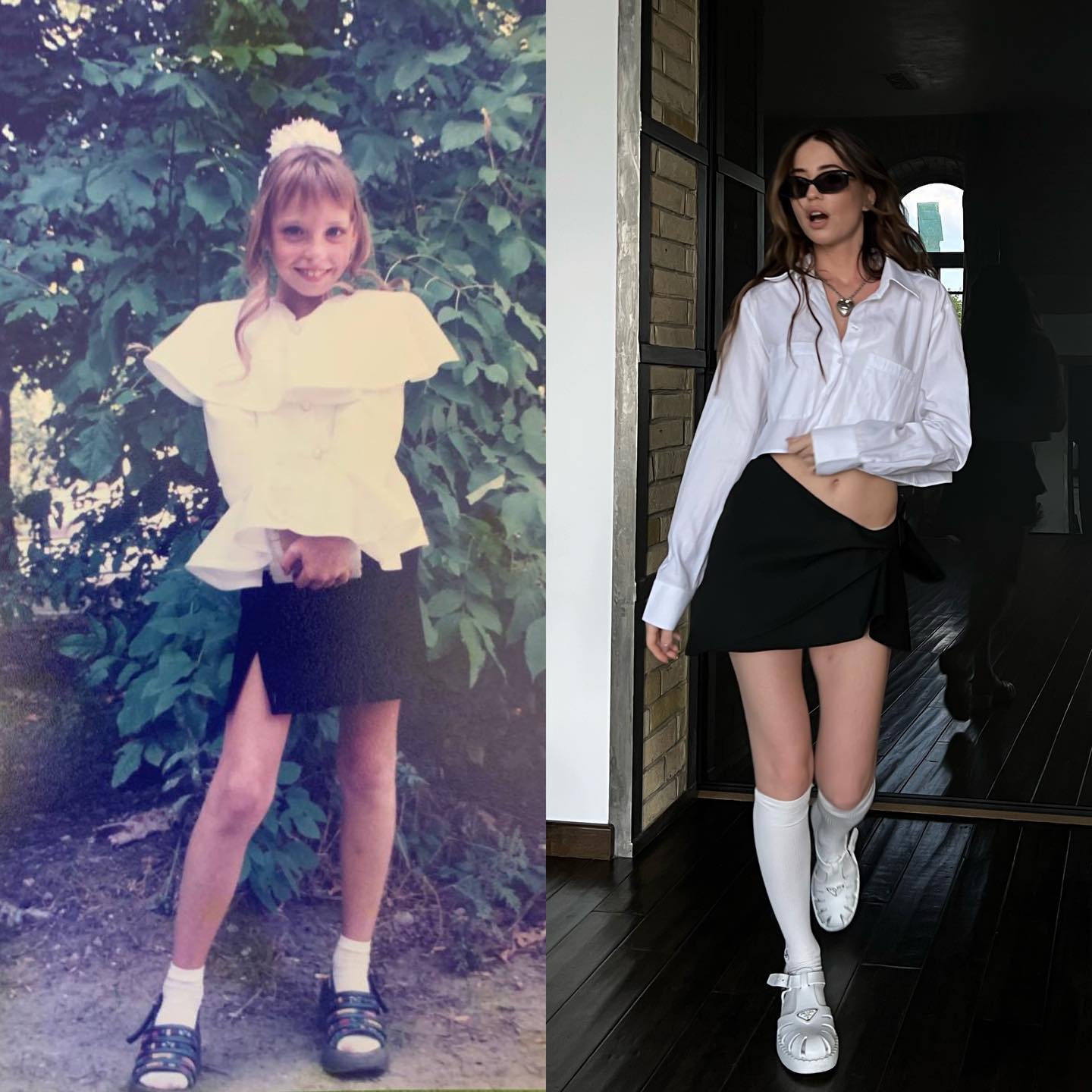 Певица Надя Дорофеева, которая недавно показала себя без фильтров и фотошопа, на этот раз опубликовала пост о своих образах. В частности, артистка сравнила свою одежду в детстве и сейчас, после чего отметила, что ее стиль практически не изменился.