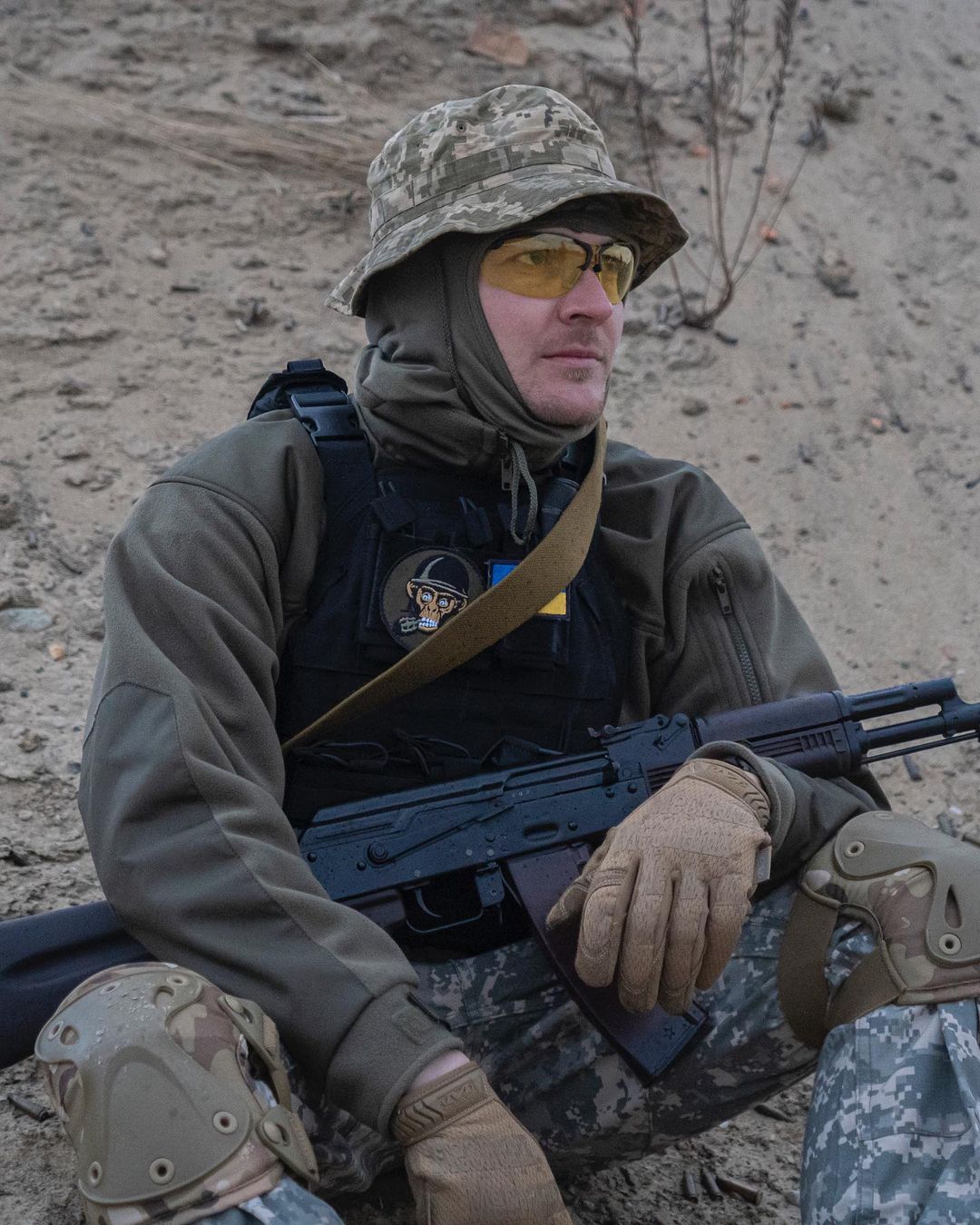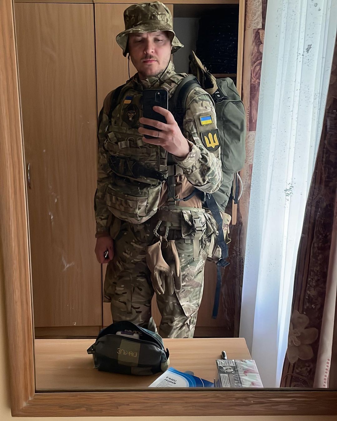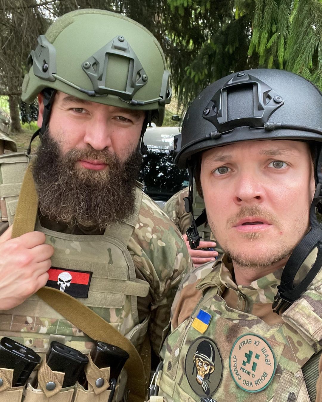 Артист на своей странице в Instagram опубликовал серию фотографий из новой жизни: вместо рокерского наряда - военная форма, а вместо гитары - оружие.