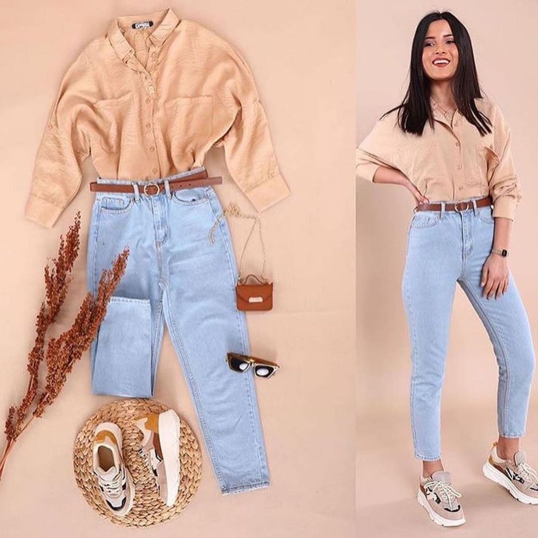 Для тех, кто устал от однообразия белых рубашек, предлагаем стильный вариант в бежевых оттенках. Такая рубашка будет отлично сочетаться с голубыми джинсами, коричневыми аксессуарами и массивными кроссовками.