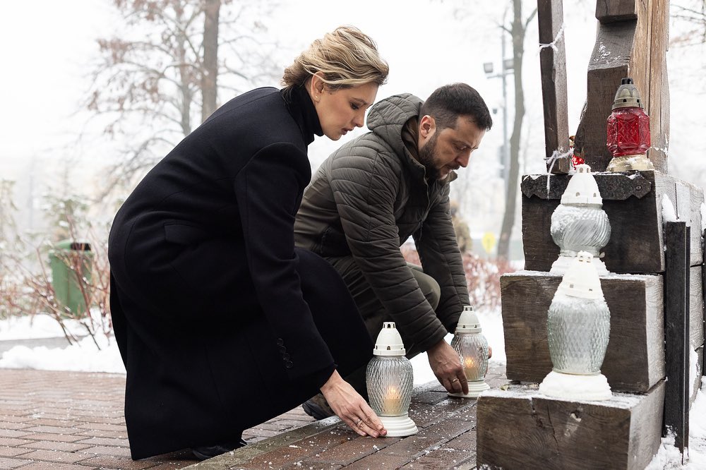 На опубликованных фото можно увидеть, как президент с супругой посетили мемориал памяти Героев Небесной Сотни в Киеве и возложили свечи в честь погибших защитников свободной Украины.