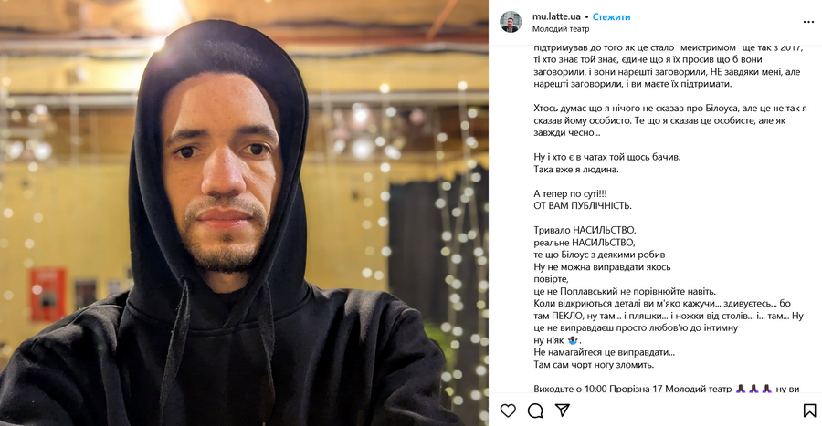Читайте также: Скандал с сексуальными домагательствами в Молодом театре: режиссерка поделилась шокирующим видео.
