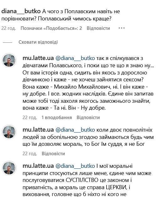 В комментариях Виктора спросили, почему Билоуса нельзя сравнивать с Поплавским, которого также обвиняют в домогательствах. На что актер рассказал историю, которую ему поведали бывшие студентки КНУКИМ.