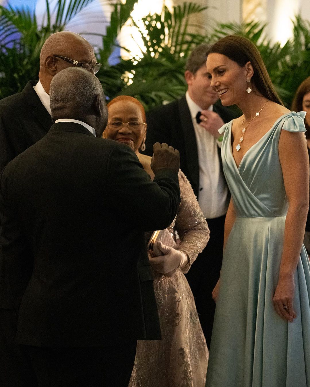 На приеме у генерал-губернатора Багамских островов в 2022 году принцесса Уэльская была одета в эффектное голубое платье от Phillipa Lepley.