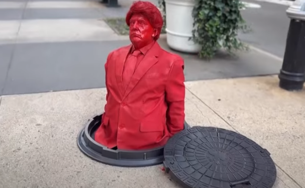 На днях в Нью-Йорке на тротуаре появилась красноречивая скульптура. Художник Джеймс Коломина создал образ президента США Дональда Трампа как человека, вылезающего из канализационного люка.