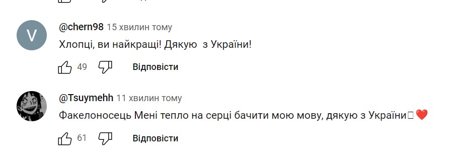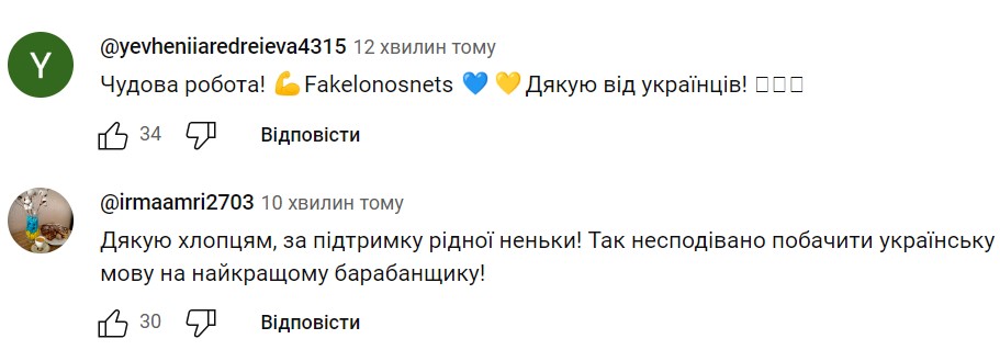В комментариях под клипом украинцы благодарят музыкантов за поддержку нашей страны и не жалеют приятных слов, поздравляя их с премьерой. Несколько комментариев по этой теме можете увидеть на странице ниже: