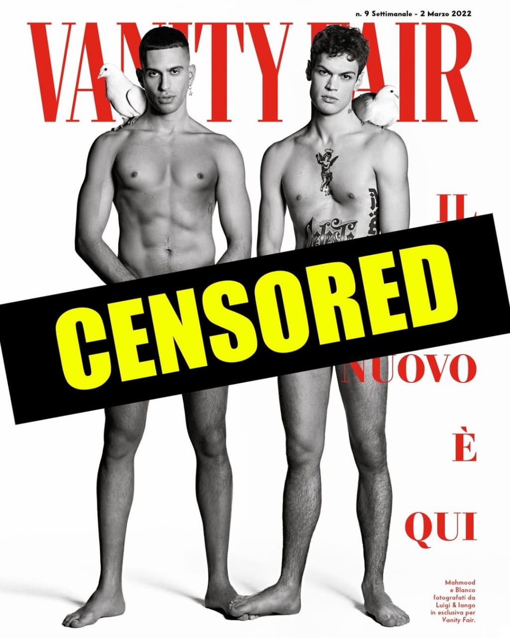 Смелый кадр опубликован на странице издания в социальной сети Instagram. Mahmood и BLANCO были запечатлены без одежды, а голые части тела прикрыли руками. На плечах у обеих сидели птицы.