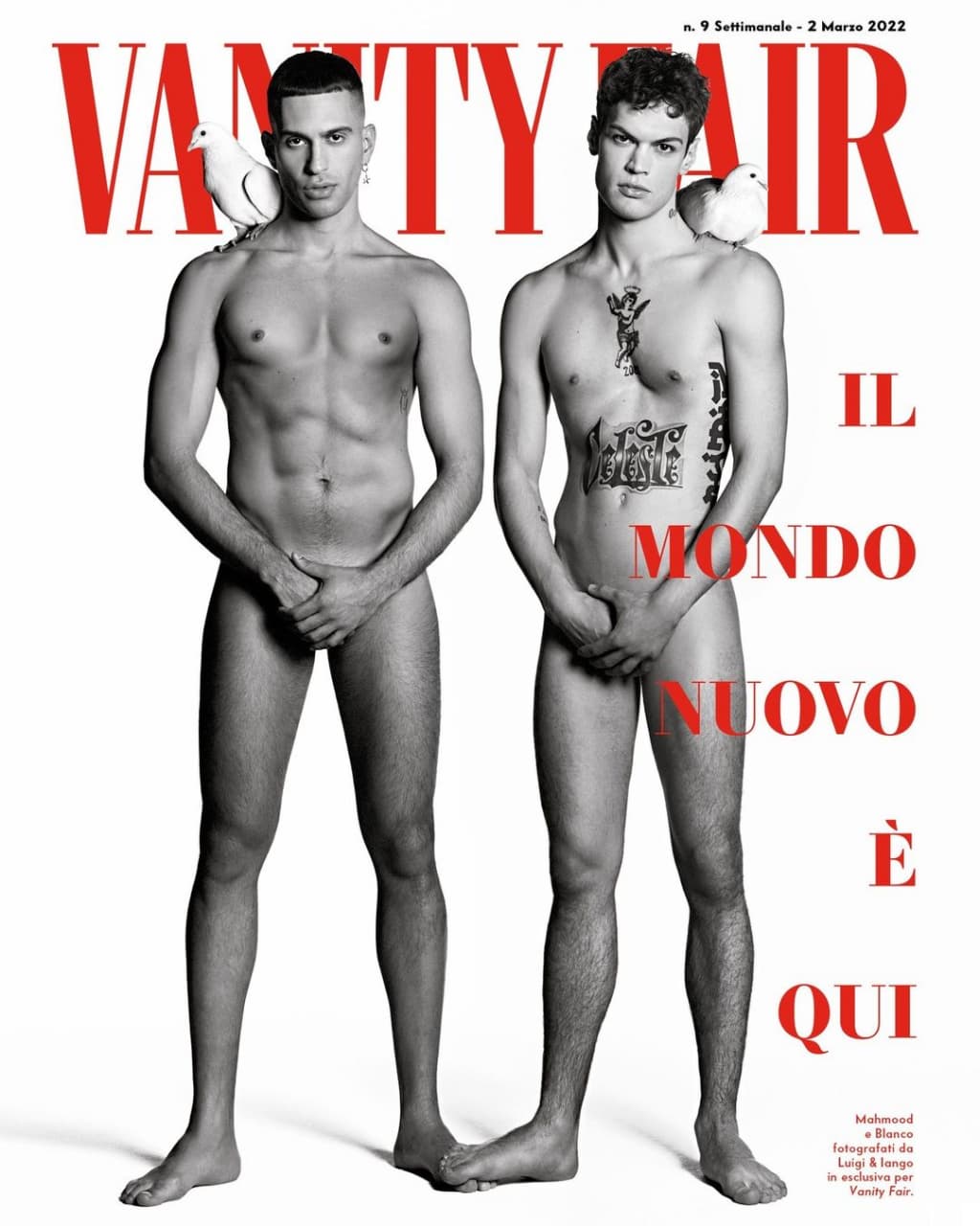 Исполнители Mahmood и BLANCO, которые будут представлять Италию на "Евровидении-2022", снялись для обложки итальянского глянца Vanity Fair. На черно-белом снимке они позировали полностью обнаженными.