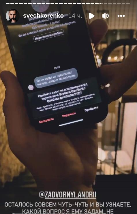 Участники "Холостячки" сдружились на шоу, и до сих пор поддерживают отношения. Один из бывших конкурентов Задворного Роман Свечкаренко показал в Instagram-историях оскорбительные сообщения, которые приходят Андрею из-за разрыва со Златой. "Ты никогда не чувствовал ничего. Пиар и только пиар", - уверены люди.