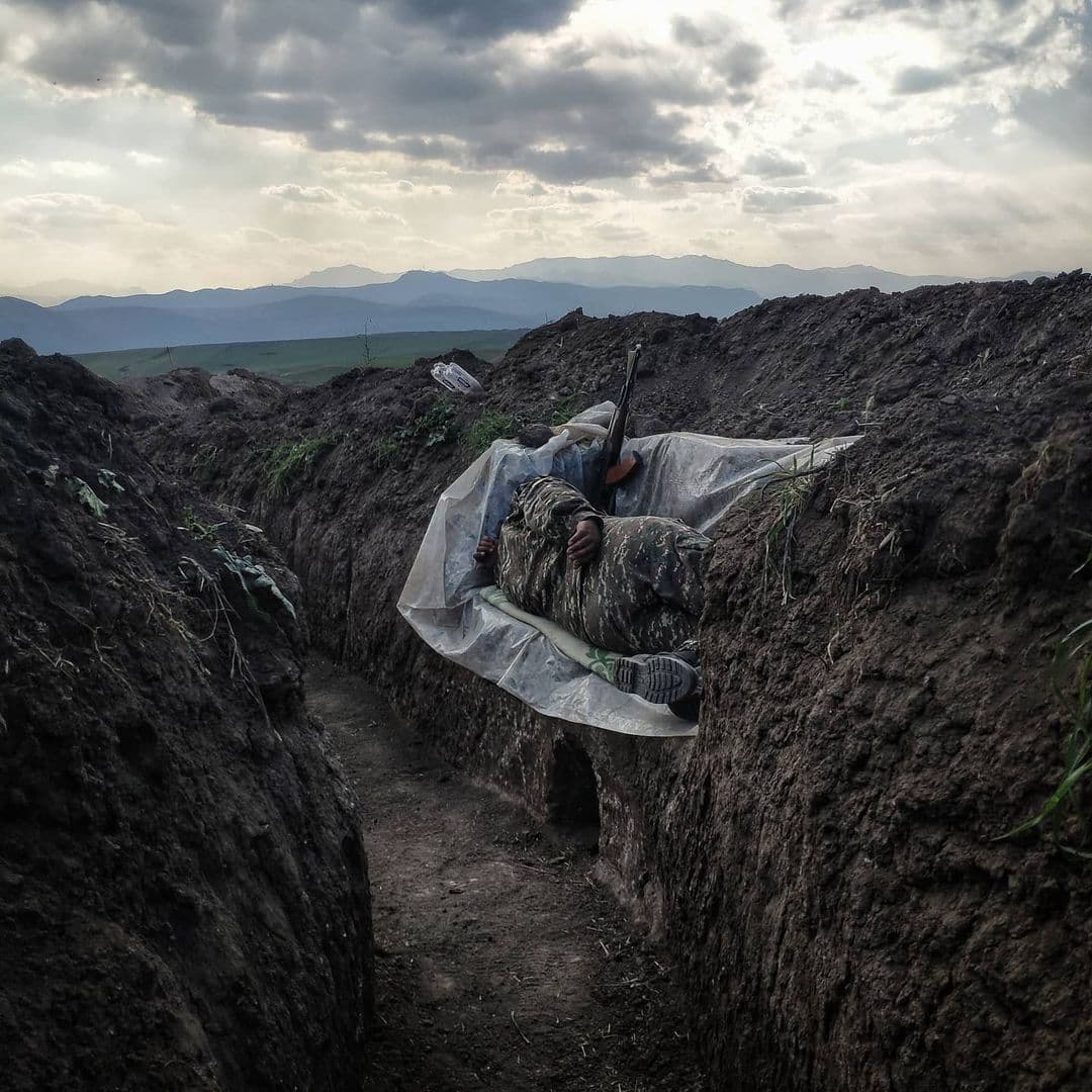 Проблемы современности, 3-е место среди одиночных фотографий. Военнослужащий отдыхает в окопе у армянского села Неркин Хндзореск (граница с Азербайджаном)