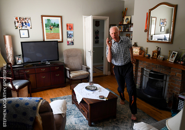 Спорт, 2-е место среди одиночных фотографий. 87-летний атлет-ветеран Пэт Нотон тренируется у себя дома в дни локдауна