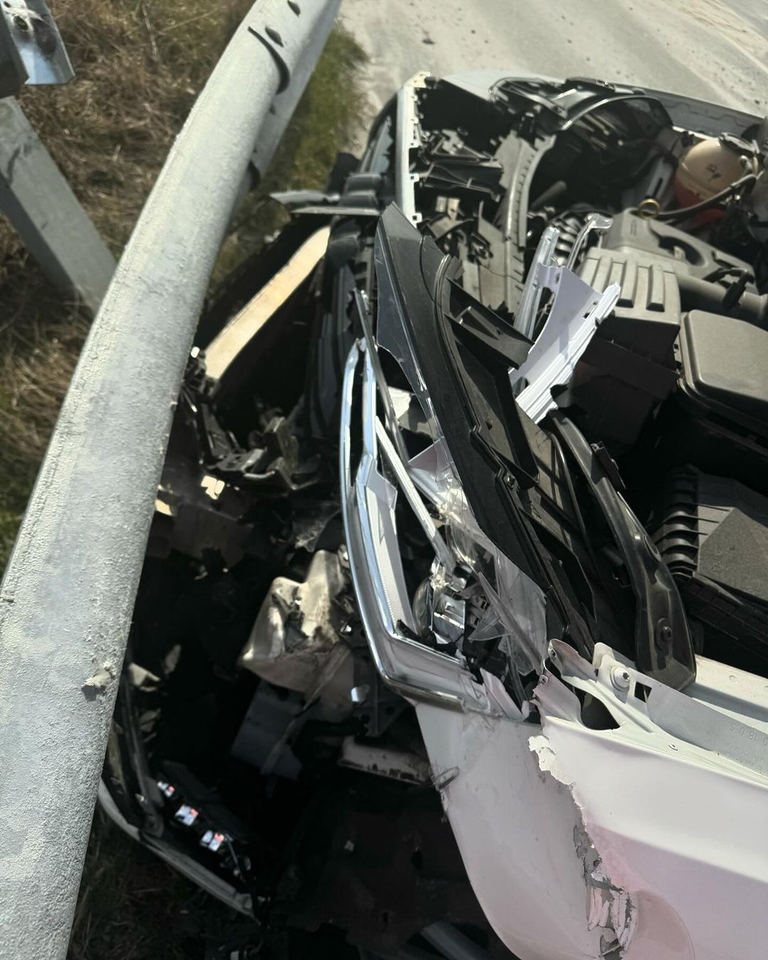 Не доехав 200 км до Днепра, девушка не справилась с управлением и на скорости врезалась в дорожный отбойник. К счастью, знаменитость осталась живой и целой, но ее белая Audi серьезно пострадала.