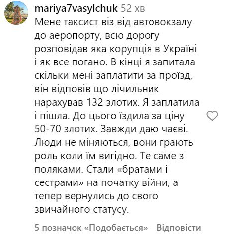 Тем временем в комментариях под постом мнения людей разделились. Одни призывают не расшатывать тему вражды, ведь таких водителей можно встретить повсюду, и защититься от них можно, если пользоваться мобильными приложениями популярных служб. Другие, напротив, согласны с мыслью, что после двух лет полномасштабной войны отношение к украинцам в Польше меняется. Вот некоторые комментарии пользователей на эту тему: