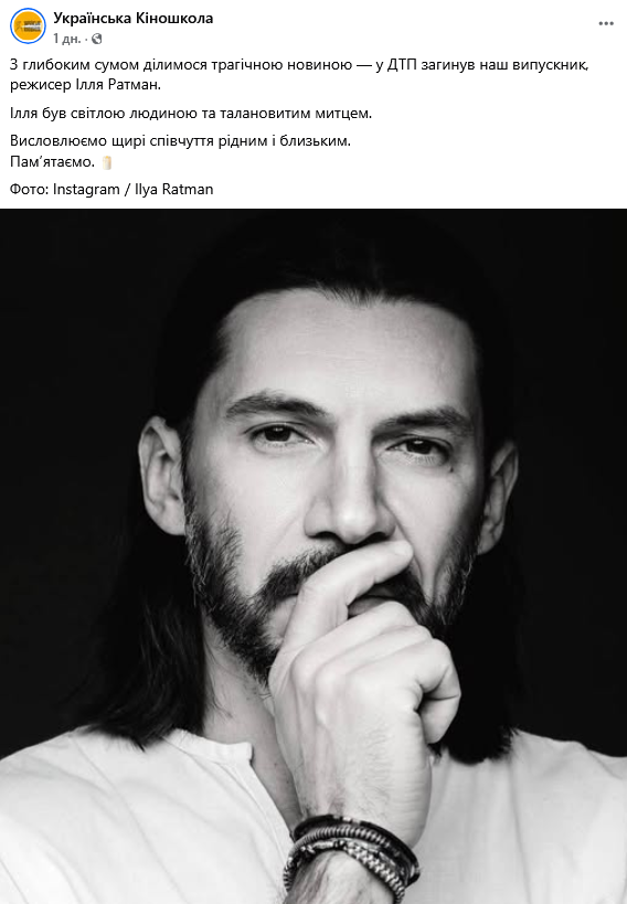 Трагическую гибель режиссера на своей странице в Facebook подтвердили в Украинской киношколе, где в свое время учился Ратман.
