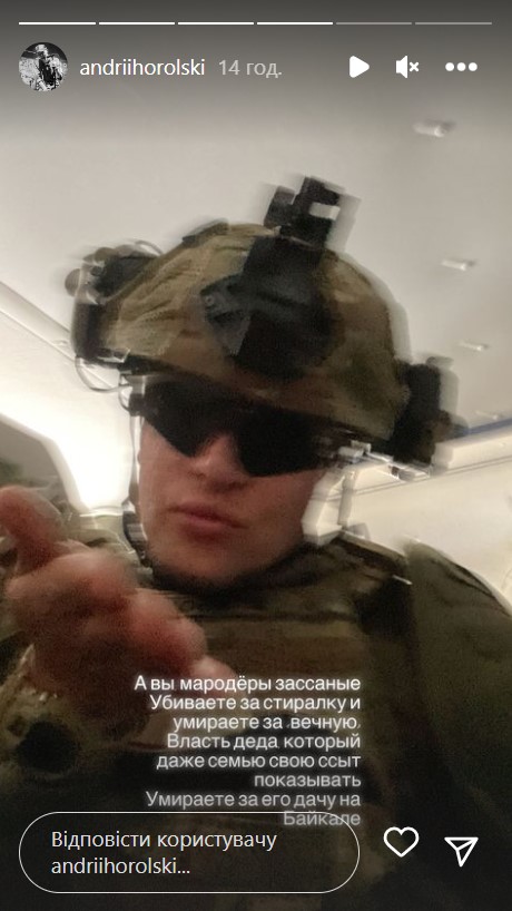 "Глупо это, враги. Глупо и бессмысленно. Ладно, мы готовы воевать за свои семьи и верховенство права над тупой силой. А вы за что? А вы, мародеры, убиваете за стиралку и умираете за вечную власть деда, который даже свою семью боится показывать. Умираете за его дачу на Байкале", - высказался артист.