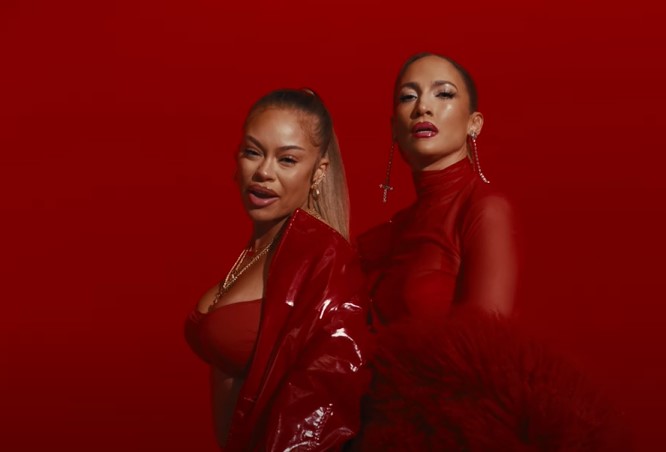 В этом видео к Дженнифер присоединилась рэперша Latto, которая была номинирована на премию "Грэмми". Она предстала в похожем, как у Лопес, наряде. Обе выбрали аутфиты красного цвета: Ло была в шубе, а ее коллега – в кожаном плаще. Свои образы они дополнили соблазнительными яркими колготками и выразительными макияжами.