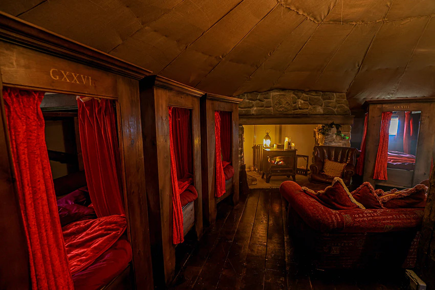 На сайте Lonely Planet сказано, что помещение имеет шесть односпальных кроватей с бархатными шторами, уютный камин, а также лаунж-зону, оформленную в стиле культовой гостиной, в которой отдыхали Гарри и его друзья.