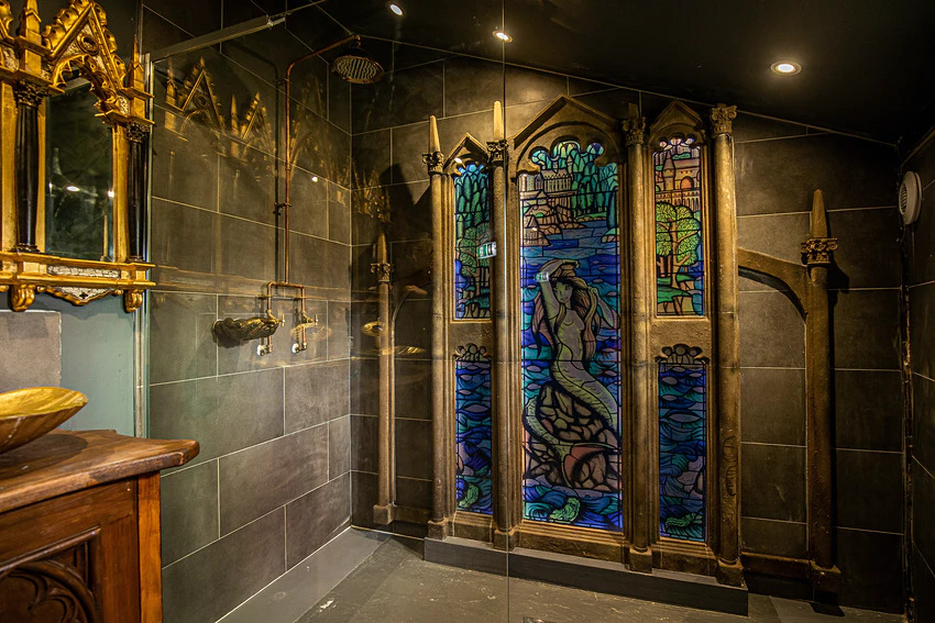 В ванной комнате отеля расположен витраж с подсветкой с изображением русалки - такой появлялся в фильме "Гарри Поттер и Кубок огня". Также есть зеркала в готическом стиле и золотистые раковины в форме ракушек.