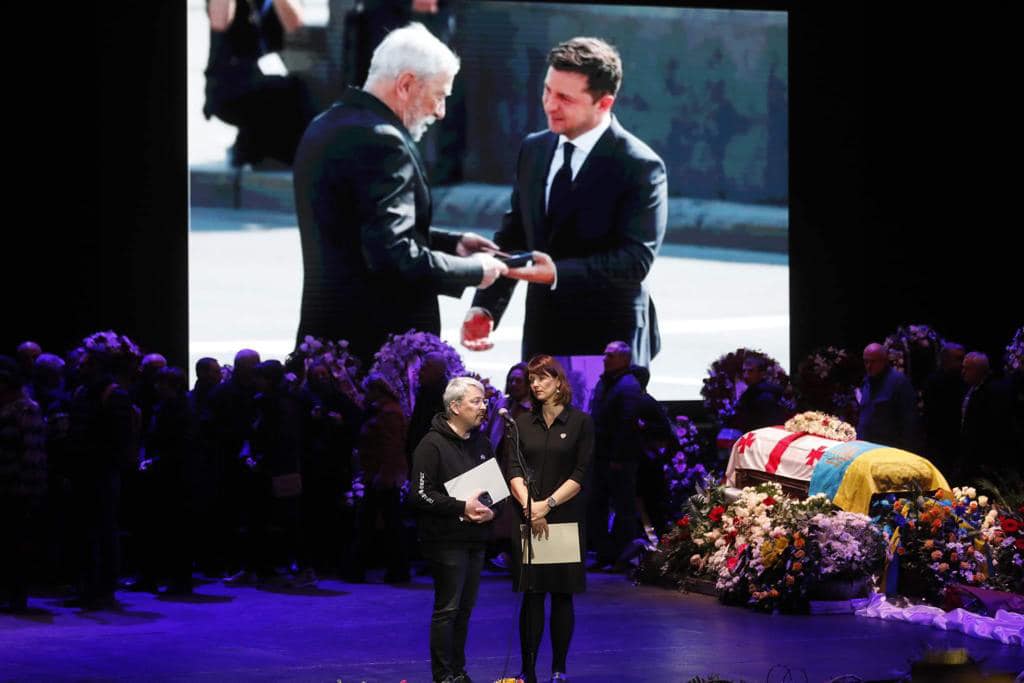 Министр культуры и инфомрационной политики Украины Александр Ткаченко побывал на похоронах и зачитал соболезнования, которые адресовал по поводу смерти Кикабидзе Владимир Зеленский.