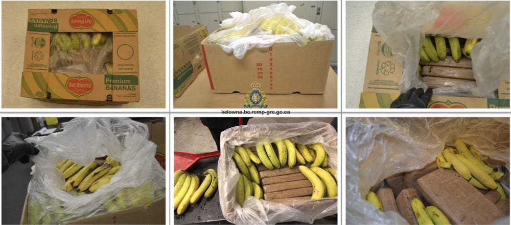 В феврале 2019 года в два продуктовых магазина в канадском городке Келоуна поступили ящики с бананами, которые очень удивили бакалейщиков: под фруктами лежали брикеты с кокаином. Полиция и пограничная служба расследовали это дело 2 года и заключили, что наркотики оказались там по ошибке, пишет Insider.