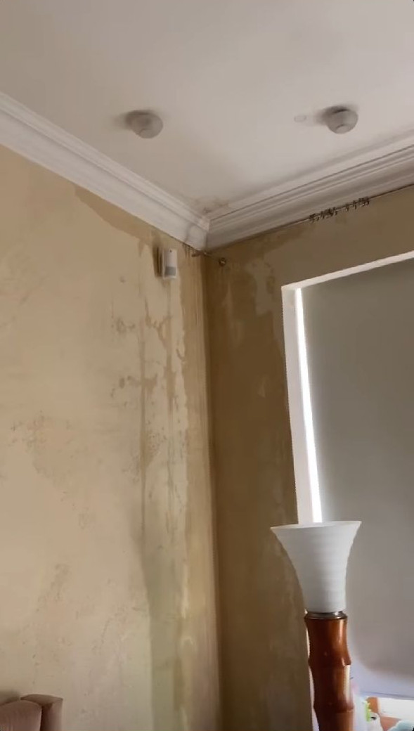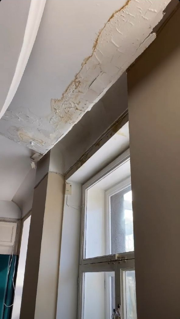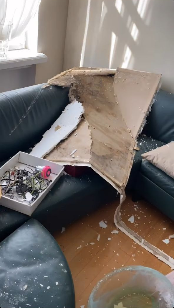 Потолки упали на дорогой кожаный диван, также на грани падения оказалась люстра.