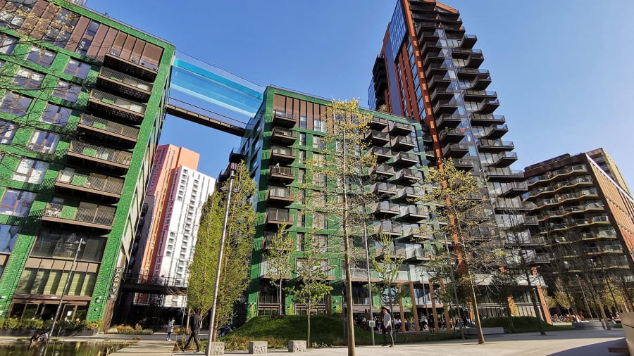 Между десятыми этажами двух высоток в Лондоне установили 25-метровый прозрачный бассейн, пишет CNN. Теперь счастливые обитатели элитного жилого комплекса смогут плавать у всех на виду и любоваться городской панорамой.