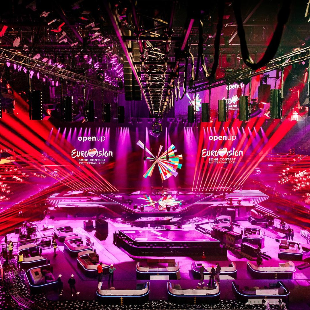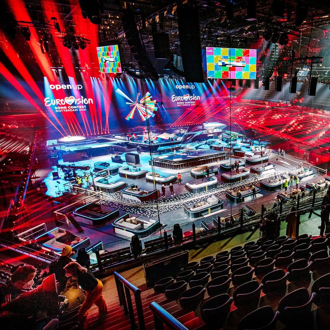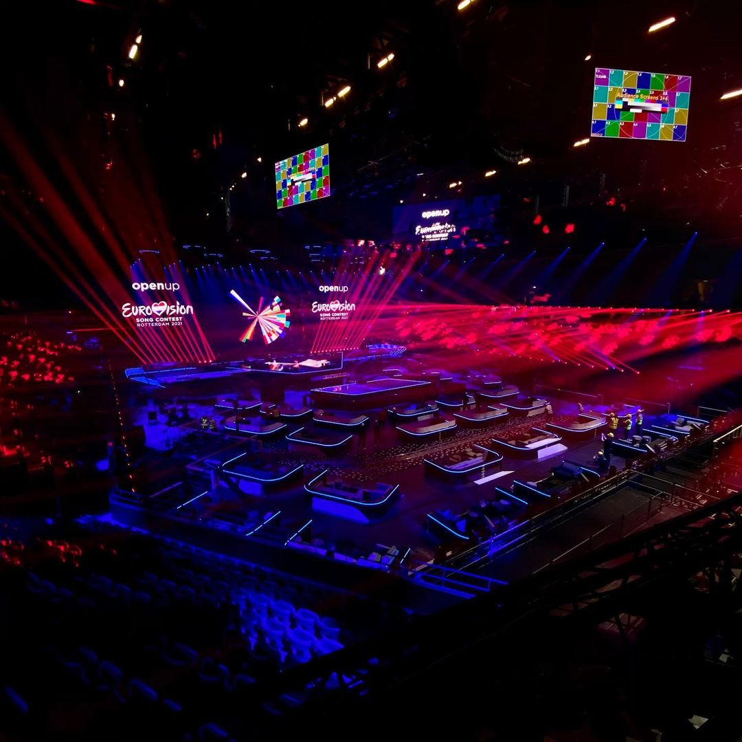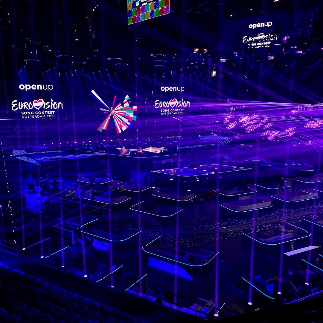 "Сцена Евровидения-2021 готова встречать нынешних участников", - отметили организаторы и показали, как выглядит главная арена конкурса в местном концертном зале Ahoy.