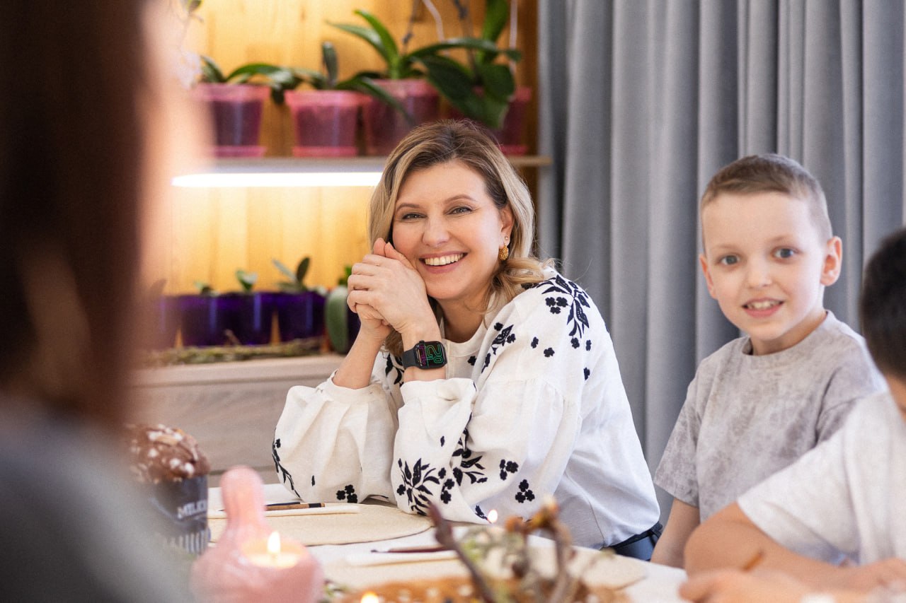 Елена Зеленская поддерживает украинских дизайнеров, поэтому для рабочих встреч выбирает вещи отечественных производителей. Накануне Пасхи первая леди посетила приемную семью переселенцев, куда надела уникальную вышитую блузу бренда Gaptuvalnya.