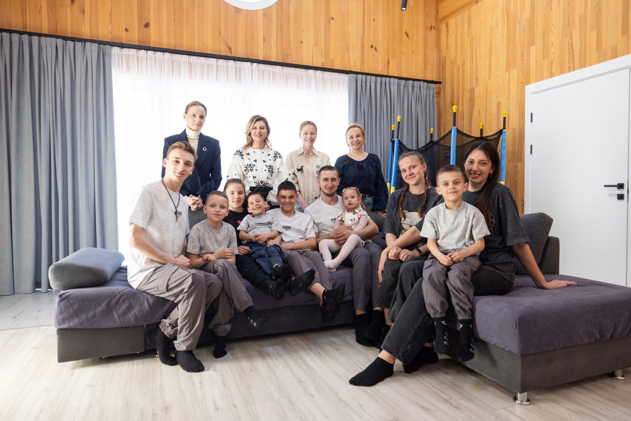 Соответствующие фотографии появились в Telegram-канале жены президента. "Семья была вынуждена покинуть родную Макеевку из-за российского вторжения еще в 2014-м. С прошлого года Яна, Виктор и девять детей - четверо родных и пятеро устроенных в семью - живут в новом доме, который мы с Фондом построили в рамках проекта "Адрес детства"", - рассказала Елена Зеленская.