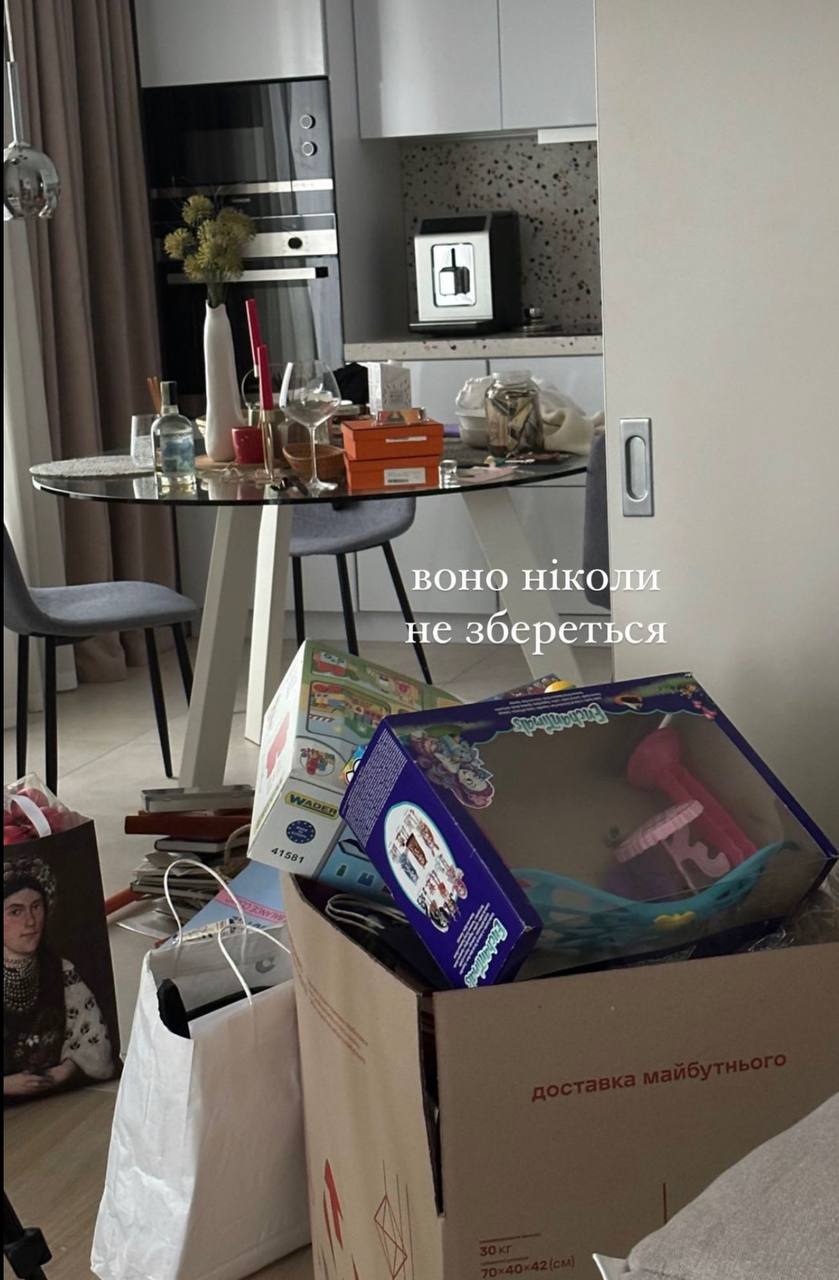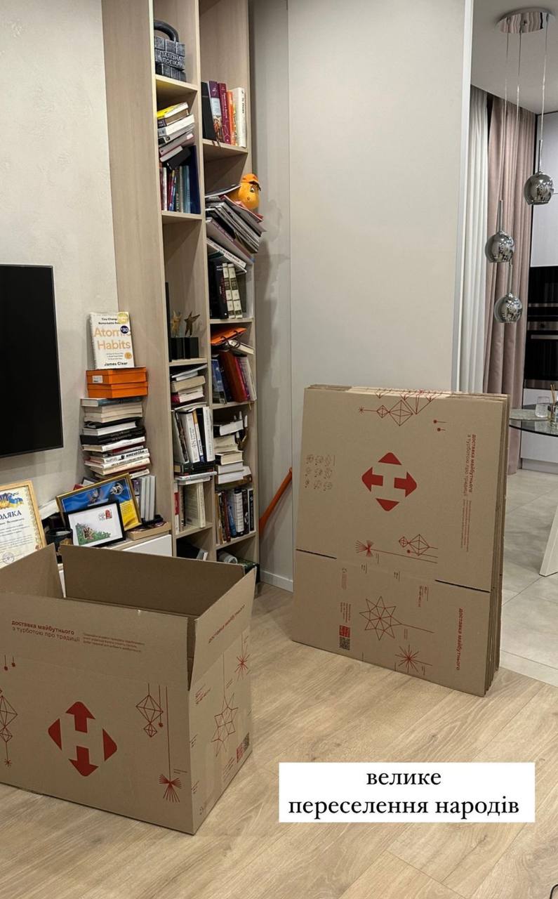 На других снимках девушка показала, как упаковывает вещи в большие коробки. "Великое переселение народов", - отметила Полтавская. "Оно никогда не соберется", - добавила она.