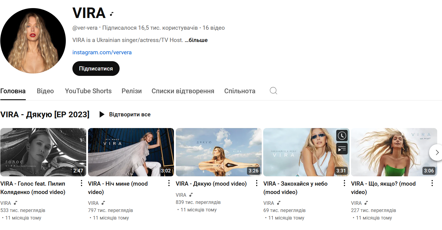 Интересно, что для украинских слушателей певица – VIRA, тогда как для других – VERA.