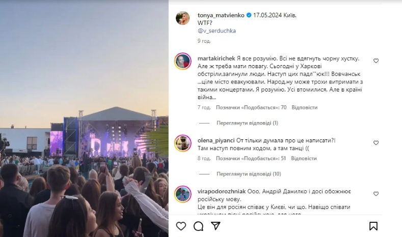 Тоня Матвиенко также была ошеломлена. "WTF?", - написала артистка.