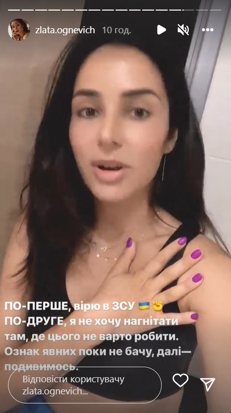 Украинская исполнительница Злата Огневич также призвала своих поклонников сохранять максимальную осторожность в День Независимости Украины. В Instagram она рассказала, что не боится атаки врага и 24 августа не планирует никуда уезжать из столицы. Артистка объяснила, что тоже намерена придерживаться рекомендаций специалистов и не будет пренебрегать сигналами воздушной тревоги.