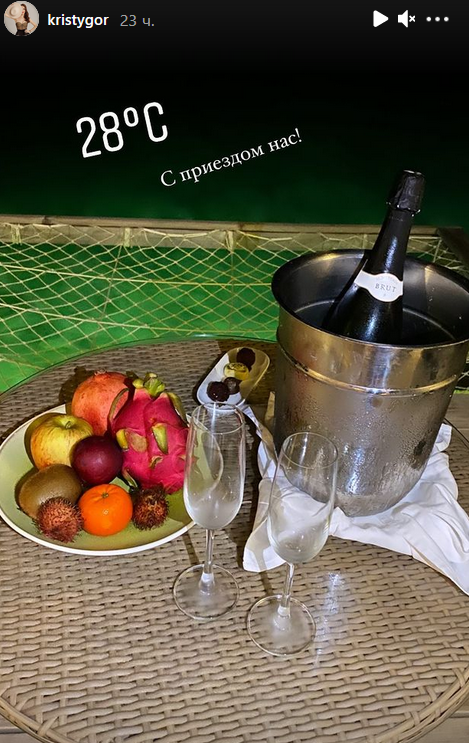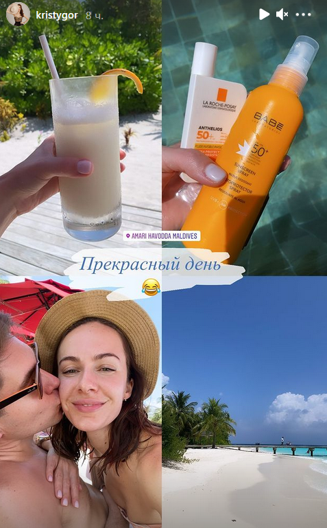 Больше кадров пара публикует в своих "сториз", судя по которым супруги наслаждаются отдыхом по полной.