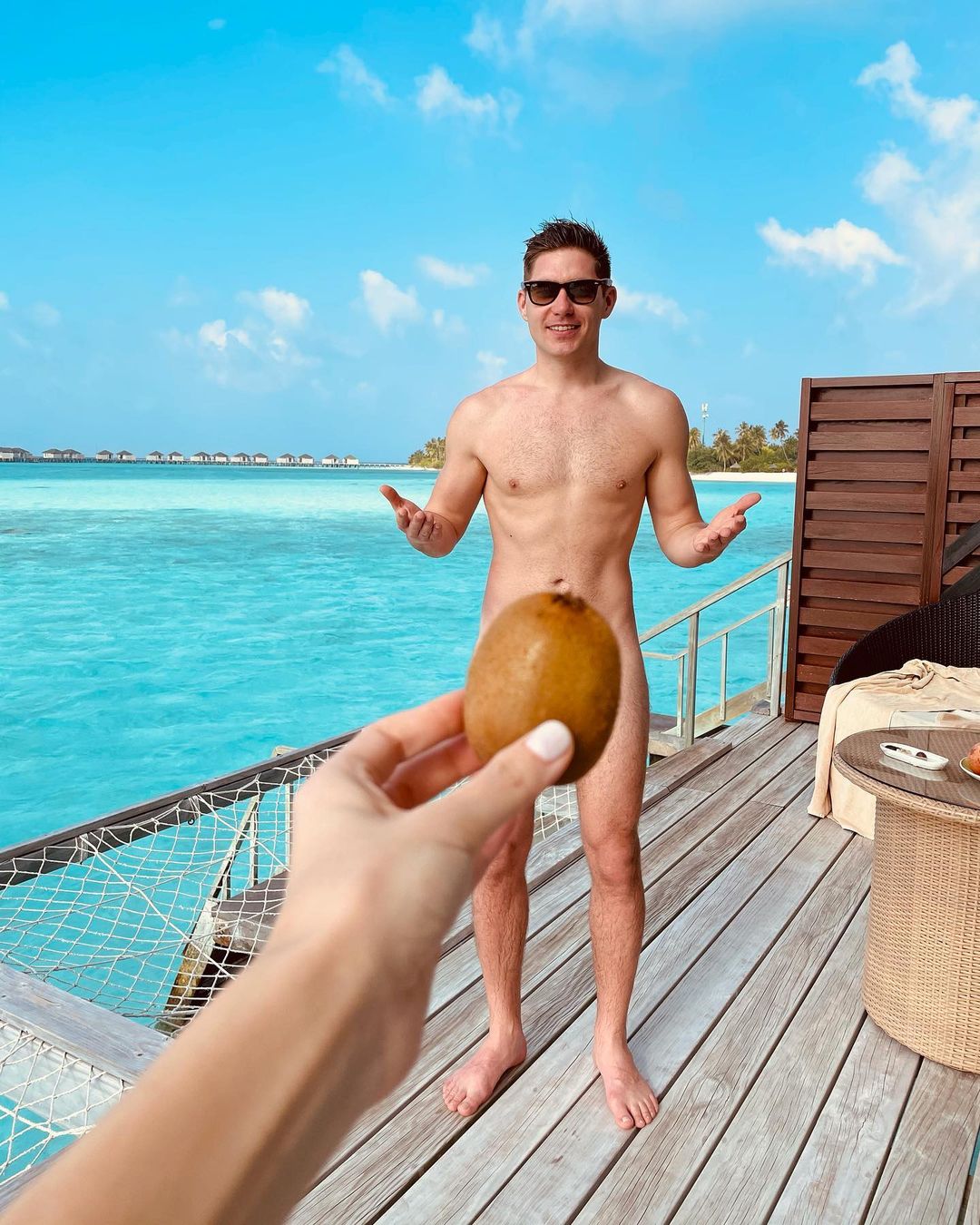 На своих страницах в Instagram пара делится яркими снимками с лакшери-отдыха, на которых позируют как в купальных костюмах, так и без. На одном из опубликованных кадров Остапчук запечатлен обнаженным, интимные места прикрывает Кристина, используя для этого киви. "А какой ты фрукт?", - поинтересовался ведущий у фолловеров.