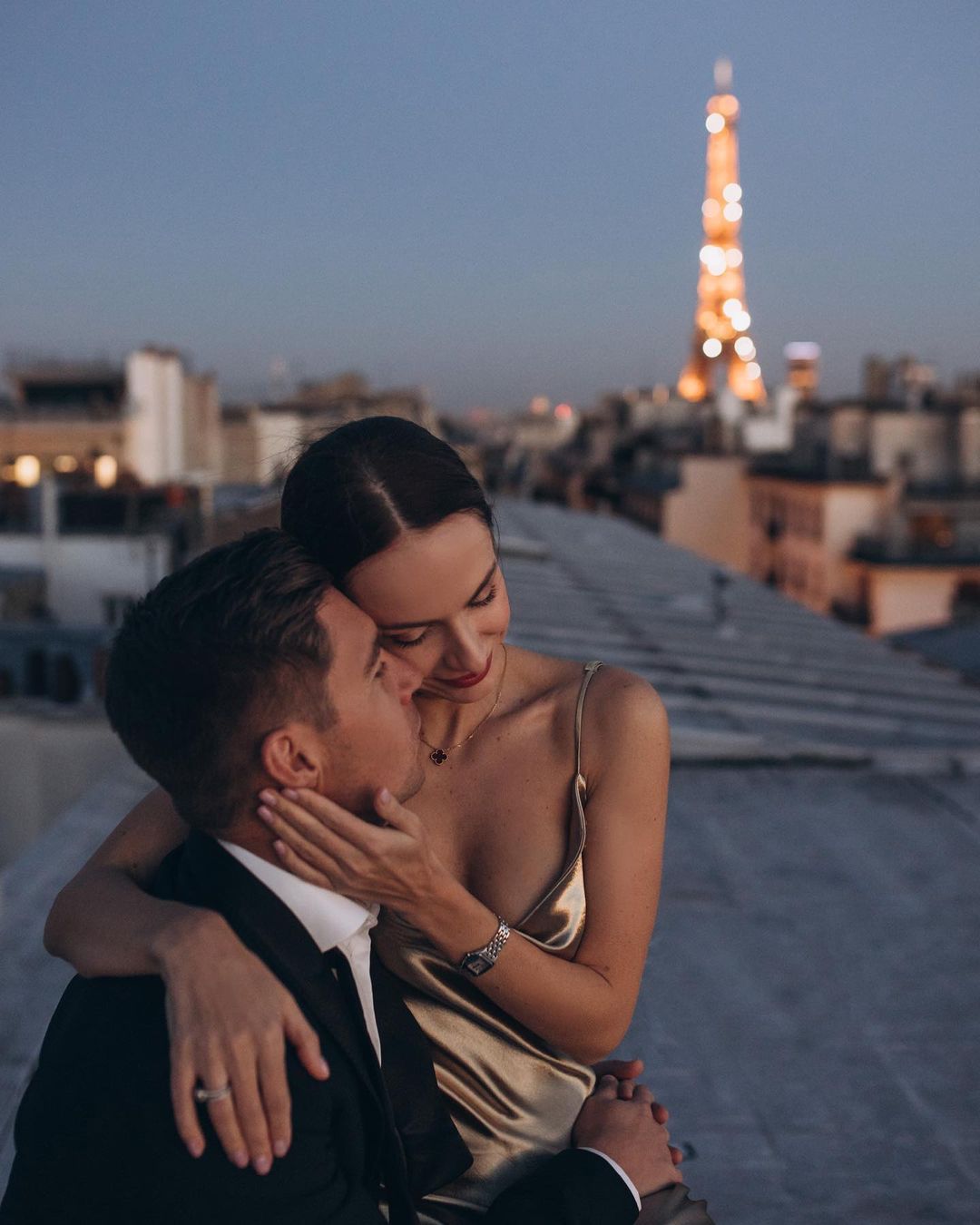 В прошлом месяце Владимир и Кристина Остапчук побывали в Париже, где, конечно же, устроили романтическую фотосессию. Пара пригласила фотографа и отправилась на крышу, откуда открывался роскошный вид на Эйфелеву башню - самую узнаваемую достопримечательность города любви.