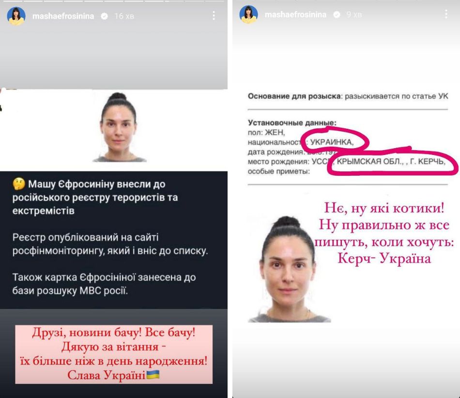 Российская пропаганда давно называет всех украинских патриотов нацистами и террористами, и звезды - не исключение. Некоторые из них получили запрет на въезд в РФ на 50 лет, а другие удостоились особой чести. Так, Машу Ефросинину внесли в список террористов и экстремистов и даже объявили в розыск.