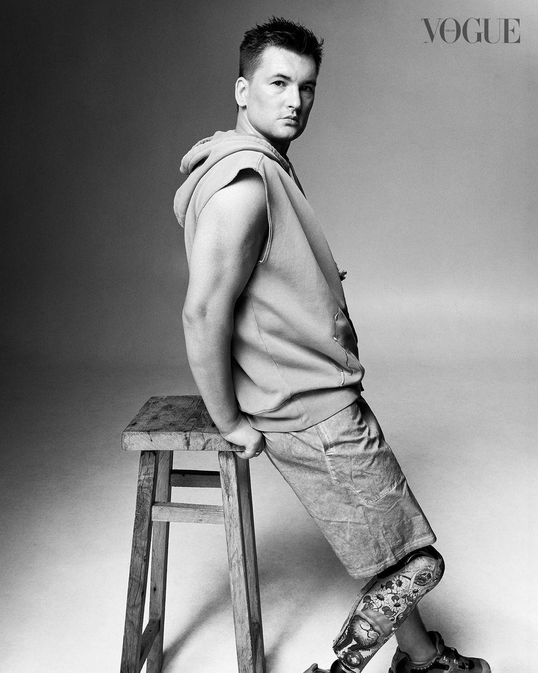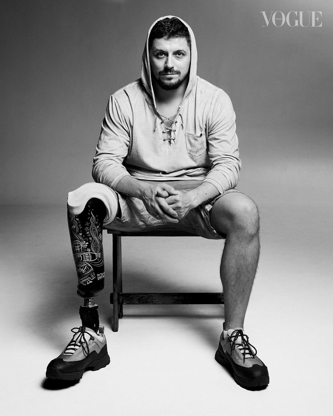 Самый старший герой съемки - 50-летний Вадим Свириденко. Мужчина потерял обе кисти и обе стопы из-за ранений, полученных в 2015 году в боях в Дебальцево Донецкой области. Сегодня он - призер марафона Морской пехоты США и обладатель бронзовой награды на Играх непокоренных в Торонто.