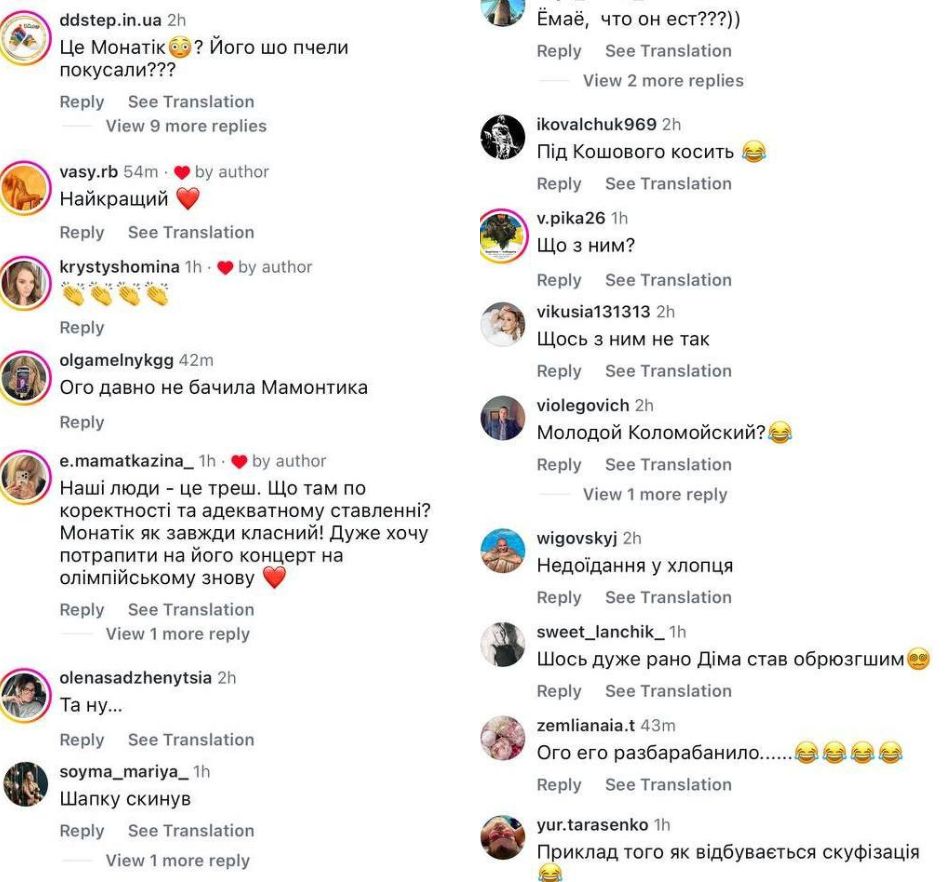 Волна хейта появилась под видео с концерта, которое в Instagram опубликовала одна из юных поклонниц певца. Некоторые комментаторы признались, что не узнали Монатика, другие же прибегли к сравнениям с другими публичными лицами, в частности Игорем Коломойским, Евгением Кошевым и Дмитрием Климашенко.