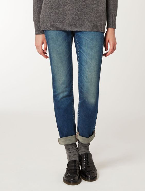 Укороченные джинсы и брюки оригинально сочетаются с носками, и последние могут выступать как в качестве акцента, так и быть в тон брюк.