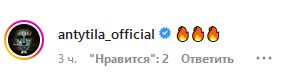 На перепев своей композиции отреагировали участники группы "Антитіла". В комментариях под постом Александра музыканты поставили эмодзи в виде огня.